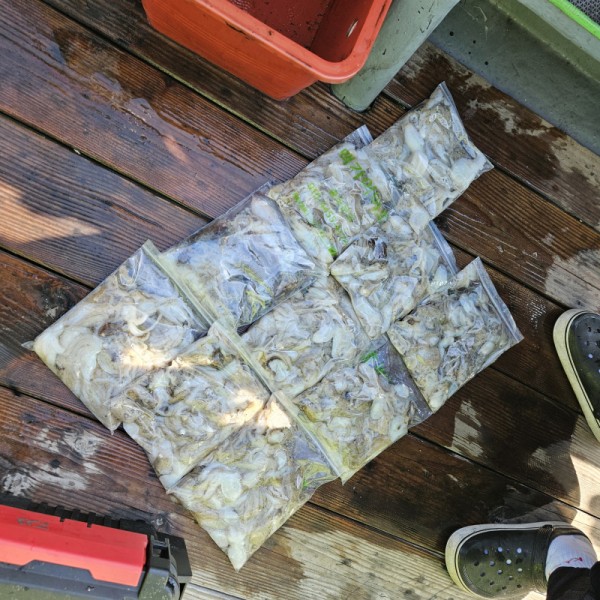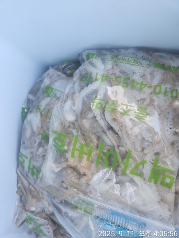 맥가이버호입항 카운터기없써서 세어보니 봉지든분 350개오바 평균200~250수 입항합니다. 쭈꾸미 많이있습니다. 백중사리 기간 물색않좋아도 잘나와줍니다